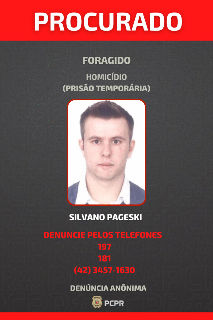 A Polícia Civil do Paraná solicita que qualquer pessoa que tenha informações sobre o paradeiro do foragido S.P. entre em contato pelo telefone (42) 3457-1630. A colaboração da população é fundamental para a conclusão das investigações.
