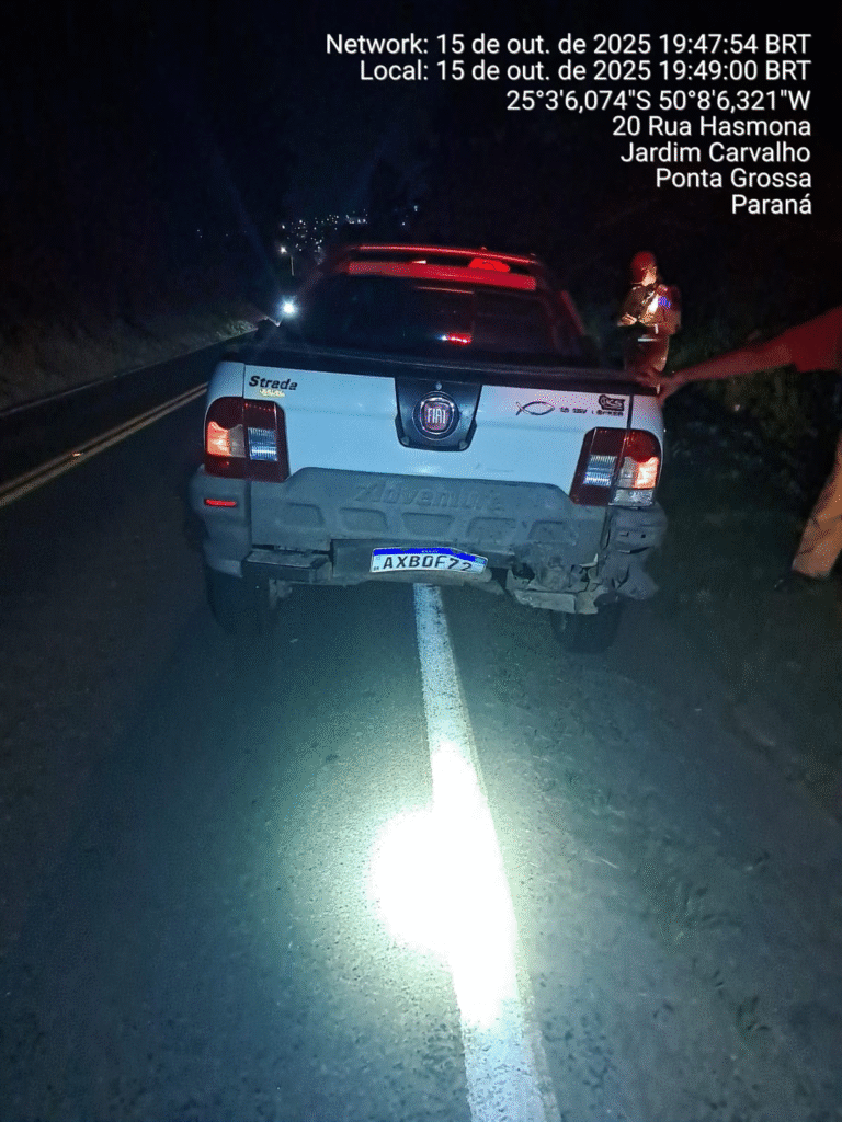 PONTA GROSSA, PR – Na noite desta quarta-feira (15), por volta das 18h15, um veículo oficial do Corpo de Bombeiros, modelo VW Gol, se envolveu em um acidente de trânsito sem vítimas na PR-151, quilômetro 323+500 metros, no trecho entre a PRC-373 e o Arroio Franco da Rocha, em Ponta Grossa (PR).